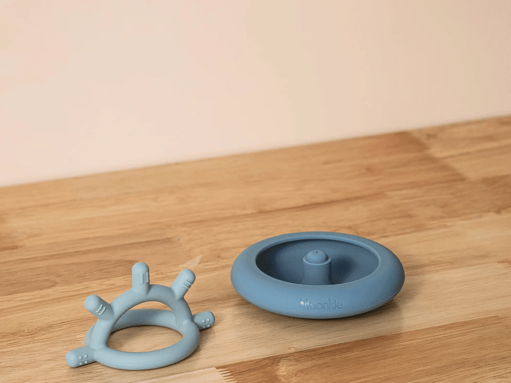 مصنوع من سيليكون بلاتيني نقي 100% (حلقات التكديس) وخشب الزان الطبيعي (مشبك اللهاية)