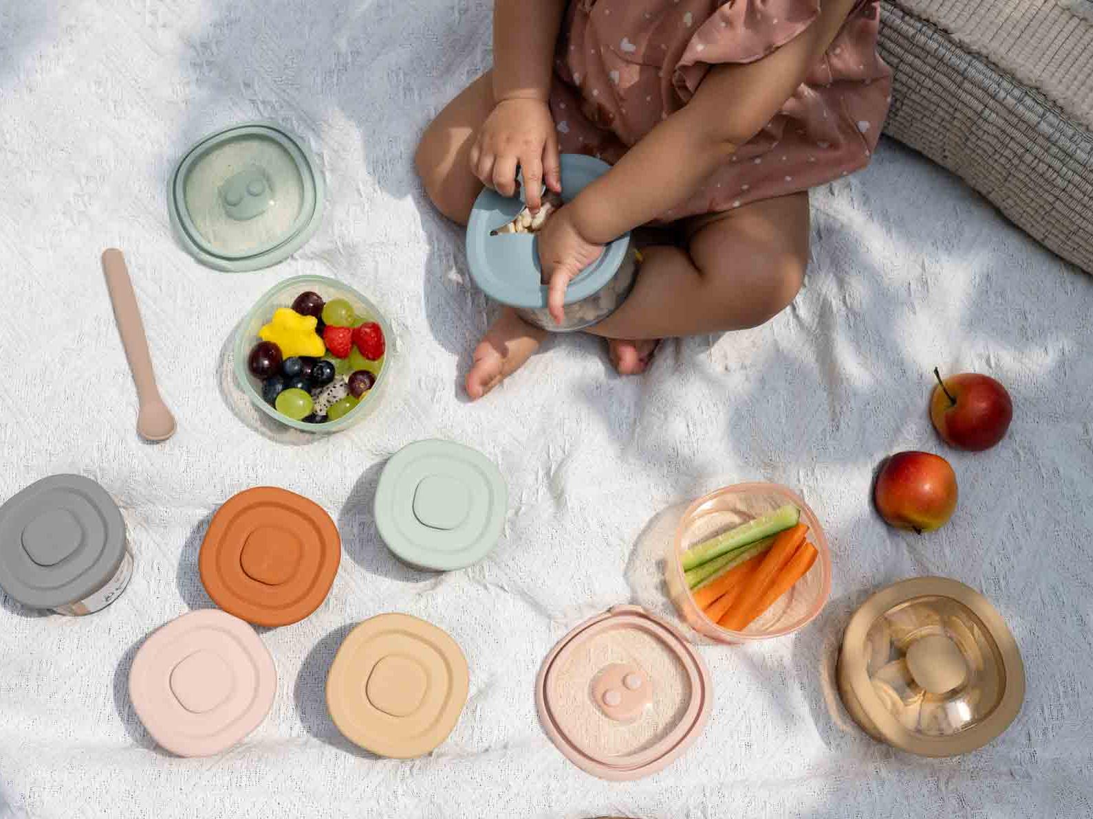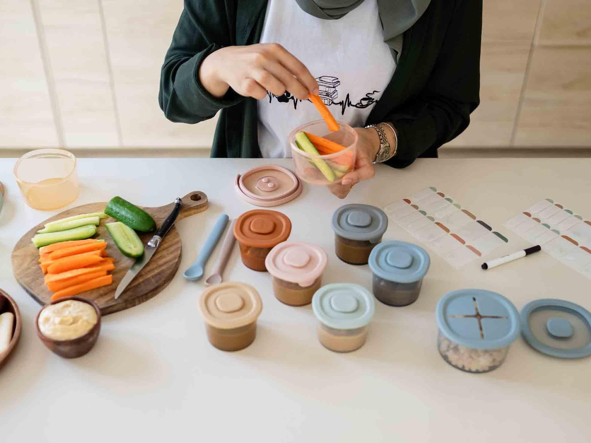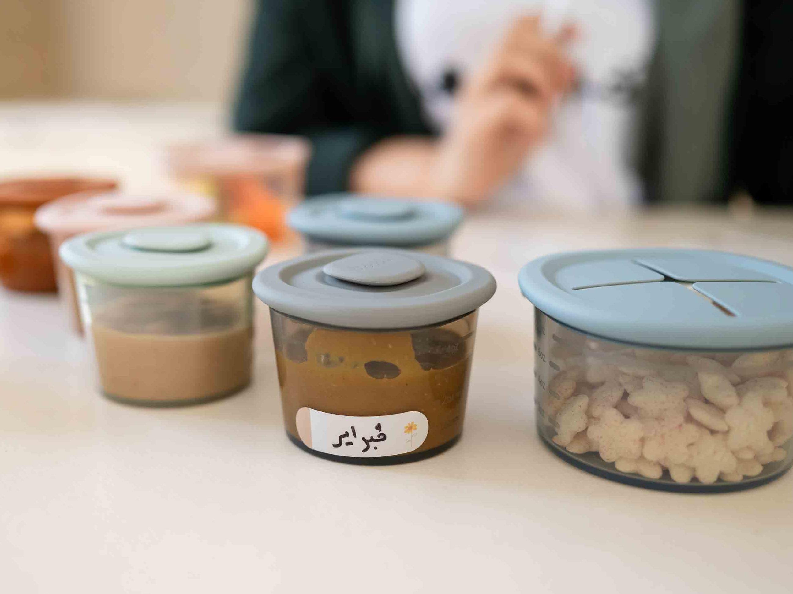 4 أونصة * 6 عبوات + 8 أونصة * 4 عبوات + غطاء وجبات خفيفة 1 + ملعقتان + 28 ملصقًا + قلم تحديد 1